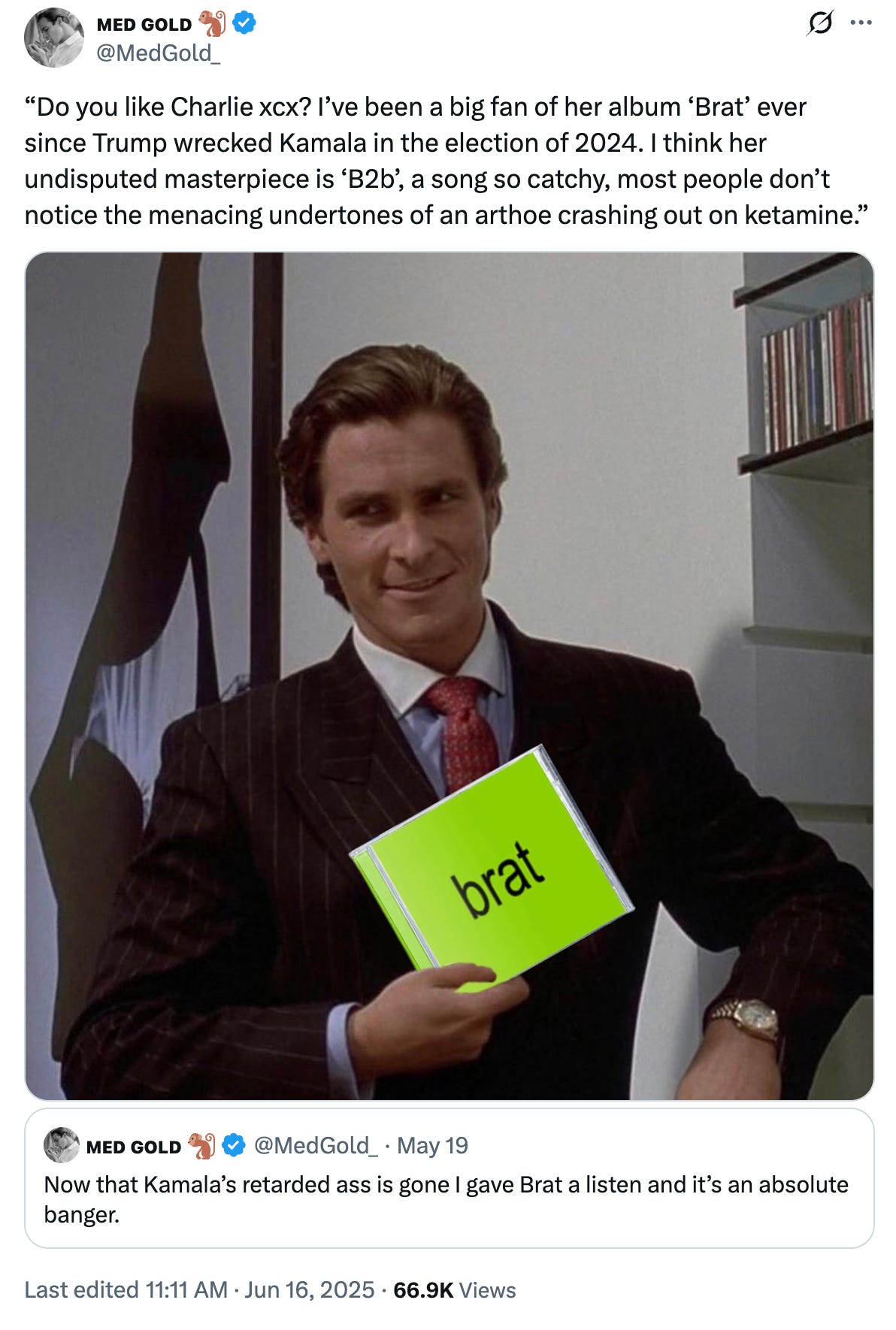 To get this out of the way — yes, I think Charli xcx is quite talented. I heard Charli’s music while being out but never listened with intent. I was turned off to Brat because it became a meme.