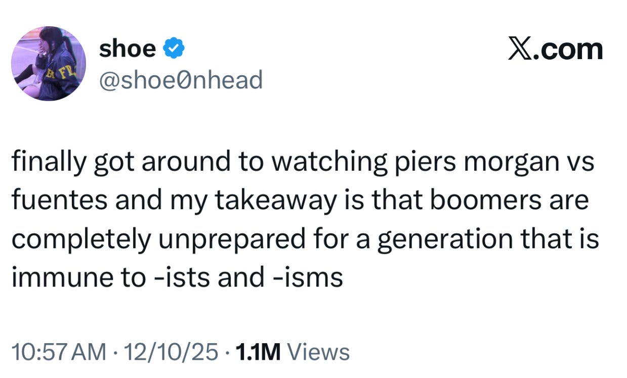 Regardless of what you think of Nick Fuentes or Piers Morgan, their viral interview symbolized the irrevocable moral divide between Gen Z and Boomers.